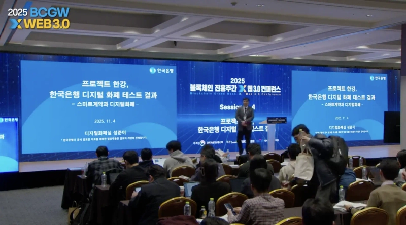 On the 4th, at the '2025 Blockchain Promotion Week X Web 3.0 Conference' held at COEX in Gangnam, Seoul, Seong Jun-yi, team leader of the Bank of Korea's Digital Currency Office, said this during the session titled 'Project Hangang, Bank of Korea Digital Currency Test Results.'