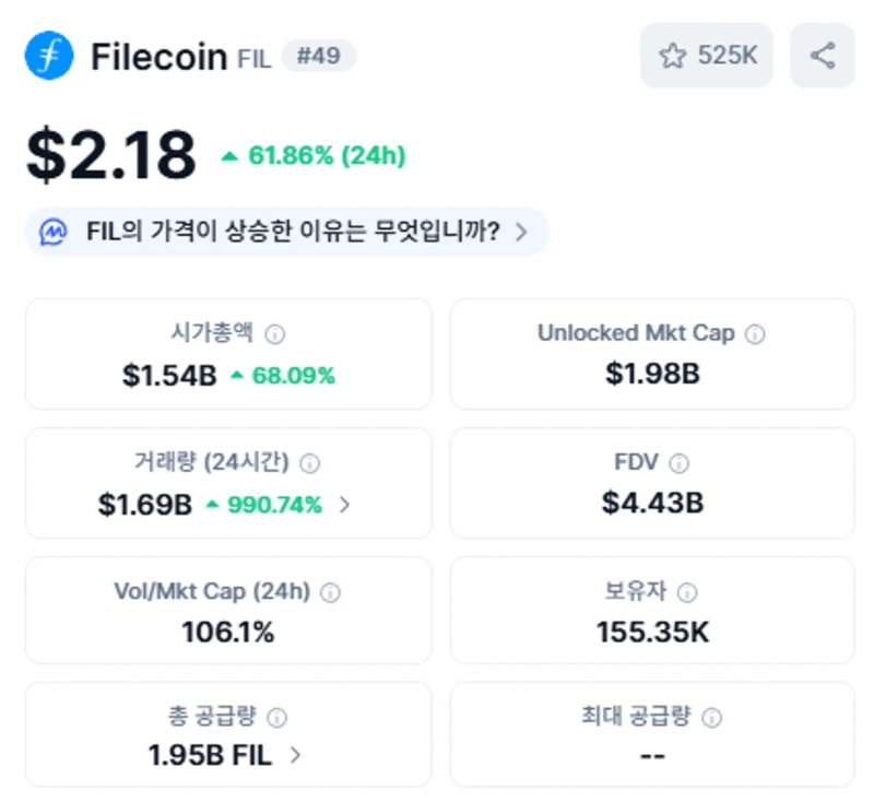 - Filecoin surged 60%% in 24 hours, surpassing the 2 dollars breakthrough resistance level.