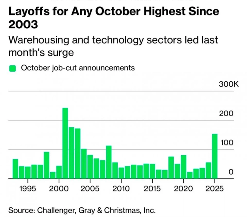 In October 2025, the U.S. labor market vividly reflected this trend. Layoffs reached 153,000 people, the largest since 2003, and UPS cut 34,000 employees while reporting record profits, causing its stock to surge 12%. This is akin to the introduction of tractors in agricultural societies that replaced hundreds of farmers with a single machine. Markets reward efficiency, and layoffs are treated as signals of value creation. AI and automation increase productivity, but the profits do not flow to workers; they change the value system of the whole.