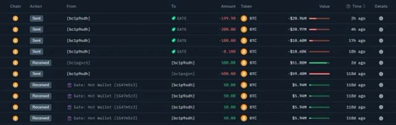 On the 11th (Korean time), according to OnChainLens, a whale investor deposited 500 Bitcoin they held into Gate.io.