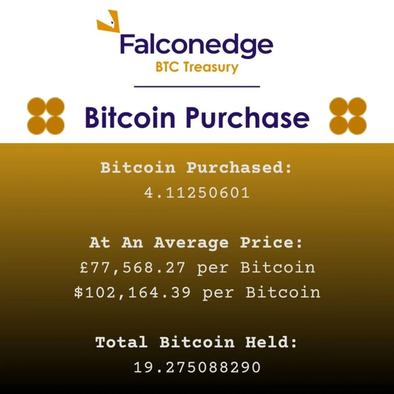 UK-listed Falcon Edge purchased additional Bitcoin (BTC).