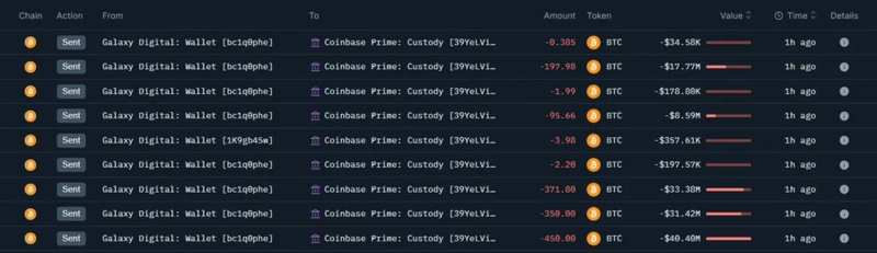 According to OnChainLens on the 18th (local time), Galaxy Digital transferred 1474 BTC (approximately $133.13 million) to Coinbase Prime about an hour earlier. Deposits to Coinbase Prime, which is mainly used by institutions and professional traders, are traditionally often interpreted as a signal of preparing to sell.