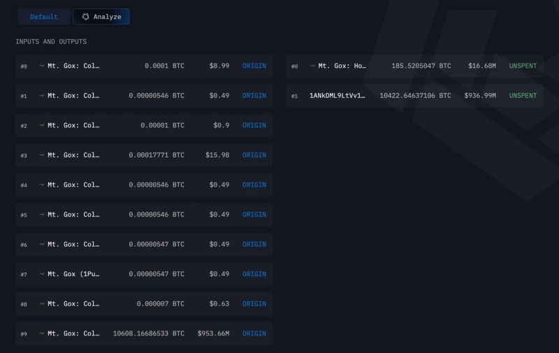According to Arkham Data on the 18th (local time), a Mt. Gox-related wallet transferred 10,608 BTC to a new address starting with '1ANkDML'. At current prices, that's approximately $953,660,000.