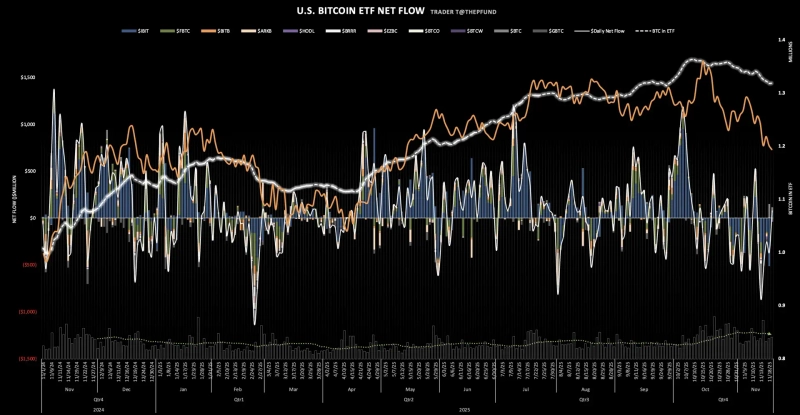 - Inflows to BlackRock IBIT and Grayscale Mini (BTC) drove the overall trend.