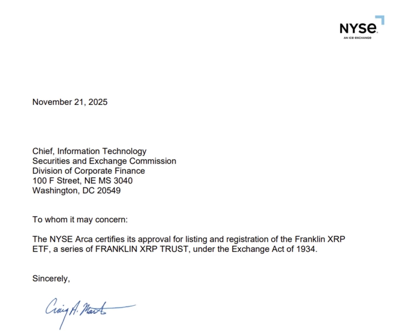The New York Stock Exchange Arca (NYSE Arca) has said that Franklin Templeton's spot XRP exchange-traded fund (ETF) 'XRPZ' meets listing requirements and has filed related documents with the Securities and Exchange Commission (SEC).