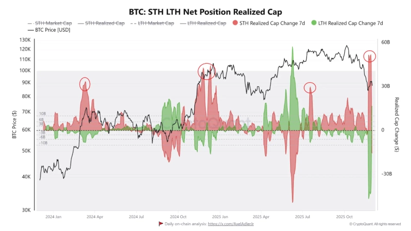 Taha added, "In the past, periods in which STHs rapidly bought and LTHs sold were generally observed just before price corrections," and "the same pattern appeared in the adjustment phases of March and December 2024."