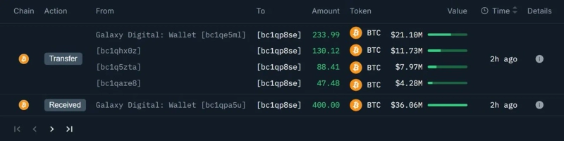 On the 9th (Korean time), according to OnChainLens, a whale wallet received 900 Bitcoin from Galaxy Digital about two hours earlier.