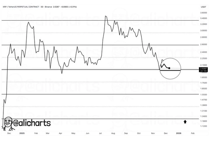 - Cryptocurrency analyst Ali Martinez said XRP must hold the $2 level to avoid falling to $1.20.