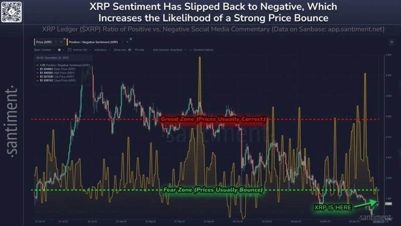 Social media sentiment surrounding XRP has deteriorated significantly compared with the average, and an analysis suggested this could be a signal indicating a possible price rebound based on past cases.