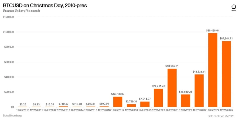 Alex Thorn, director of Galaxy Research, said on X on the 26th (local time), "For Bitcoin to close the year with a positive performance, it must trade above $93,389 on the last trading day of the year."