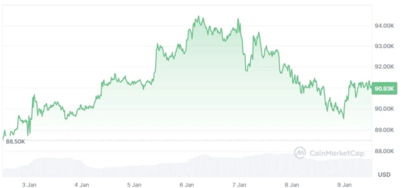 Bitcoin briefly reclaimed $94,000 on last weekend’s rebound, but slid again from the 7th and at one point dipped below $90,000 intraday. As of the 9th, it is trading around $91,000 on CoinMarketCap.
