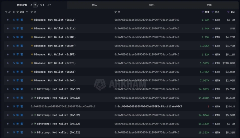 - EmberCN said the address moved a total of 75,200 ETH to exchanges, realizing about $204.9 million, a return on principal of about 410%, and currently holds 26,000 ETH.