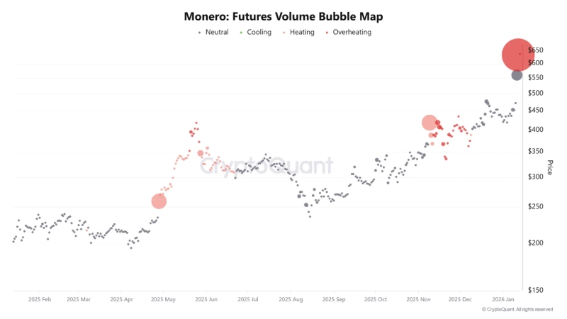 - The report said that, on the Monero futures volume Bubble Map (Futures Volume Bubble Map), overheated bubbles are repeatedly forming after prices have already risen substantially.