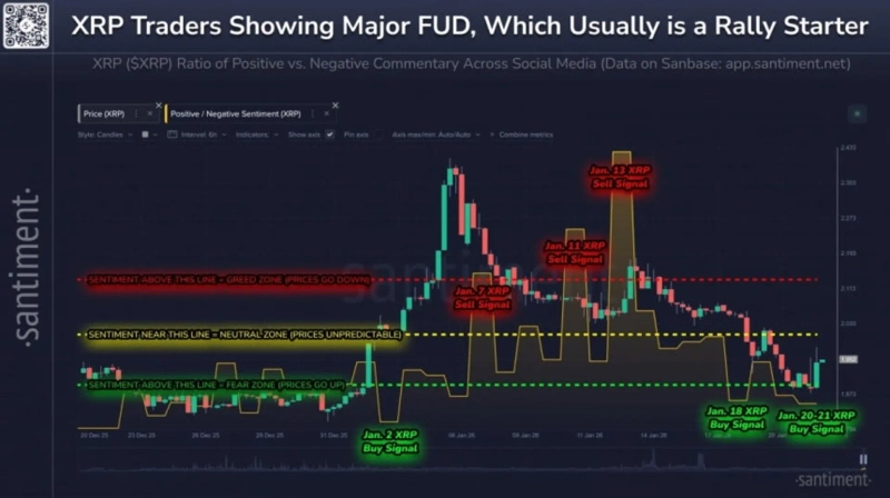 Sentiment indicators also look subdued. According to Santiment, XRP has fallen about 19% from its January 5 peak, pushing investor sentiment into the “extreme fear” stage. Typically, rising fear is interpreted as a sign that retail investors are exiting in large numbers or shifting to a wait-and-see stance.