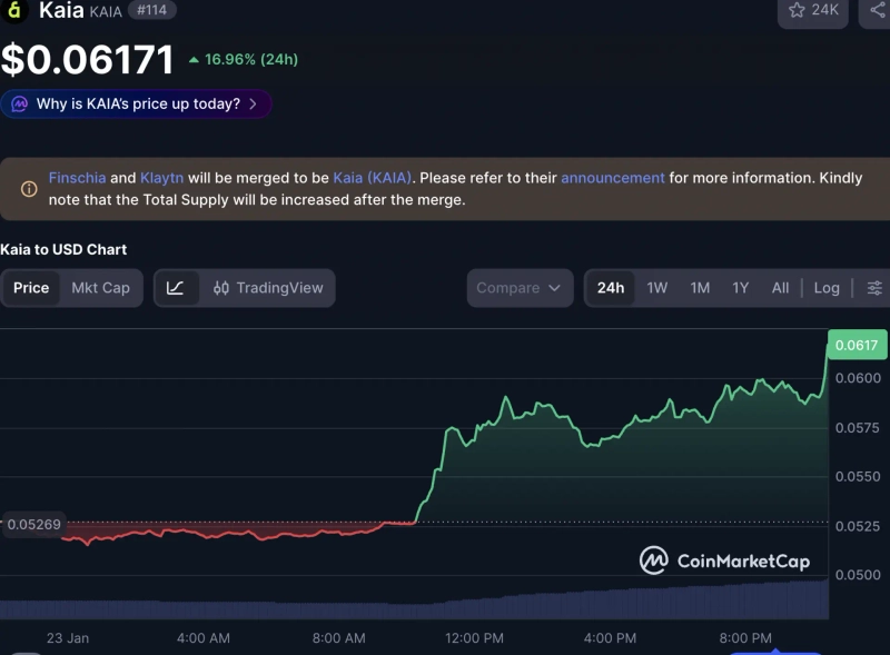 As of 10:27 p.m. KST on the 23rd, Kaia was trading at $0.06169, up 16.93% from the previous day, according to CoinMarketCap.