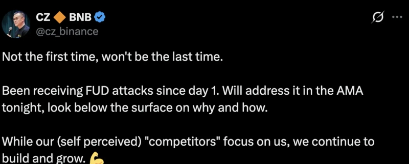 As criticism of Binance spreads... Changpeng Zhao: “I’ve been subjected to baseless attacks; I’ll address it in detail in an AMA”