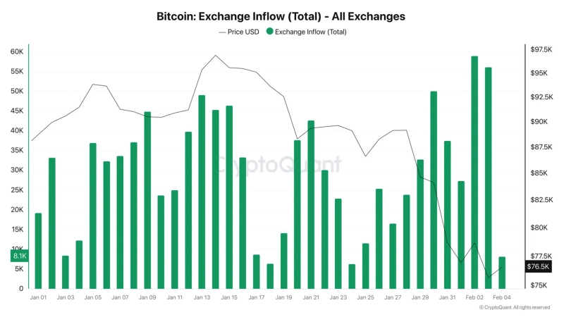 Darkfost, a CryptoQuant contributor, said on X that “over the past 2–3 days, between 56,000 and 59,000 Bitcoin have flowed into Binance,” adding on the 4th (local time) that “this is the largest amount so far this year.” Darkfost said the influx is significant because it occurred while Bitcoin was trading near a key support level of $74,000, noting that “if (the Bitcoin price) continues to break below the support level, the long-term trend itself could come into question.”