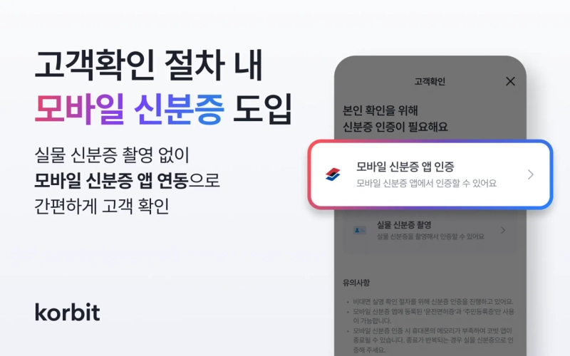 Korbit, a virtual asset (cryptocurrency) exchange, said on the 5th that it has introduced a customer verification (KYC) method using a "Mobile ID."