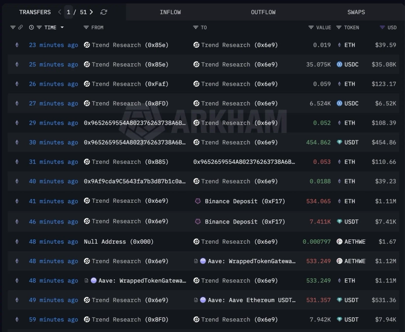 According to data from Arkham Intelligence on the 7th (local time), Trend Research transferred about 31,073 Ether it held that day to Binance. This effectively means Trend Research has wound down its Ethereum position in full. The associated on-chain address currently has only 0.165 ETH remaining.