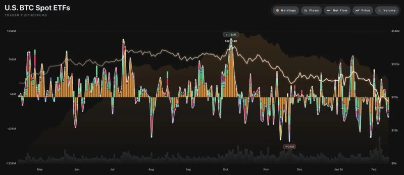 According to data from Trader T on the 12th (local time), the 12 US spot Bitcoin ETFs recorded total net outflows of $410.57 million on the day.