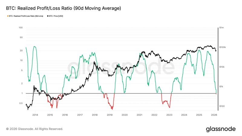 Major on-chain indicators remain in a defensive phase. On the 25th, on-chain analytics firm Glassnode assessed that “spot, derivatives, ETFs, and on-chain indicators broadly remain in a defensive state, and investor participation is low.” It added, “The realized profit/loss ratio has recently fallen below 1, entering a phase of excessive loss realization.” The realized profit/loss ratio indicates whether market participants are taking profits or selling at a loss; a reading below 1 implies a phase in which loss-selling dominates. Glassnode added, however, that “when this phase has persisted for more than six months in the past, rebounds tended to emerge alongside a recovery in liquidity.”