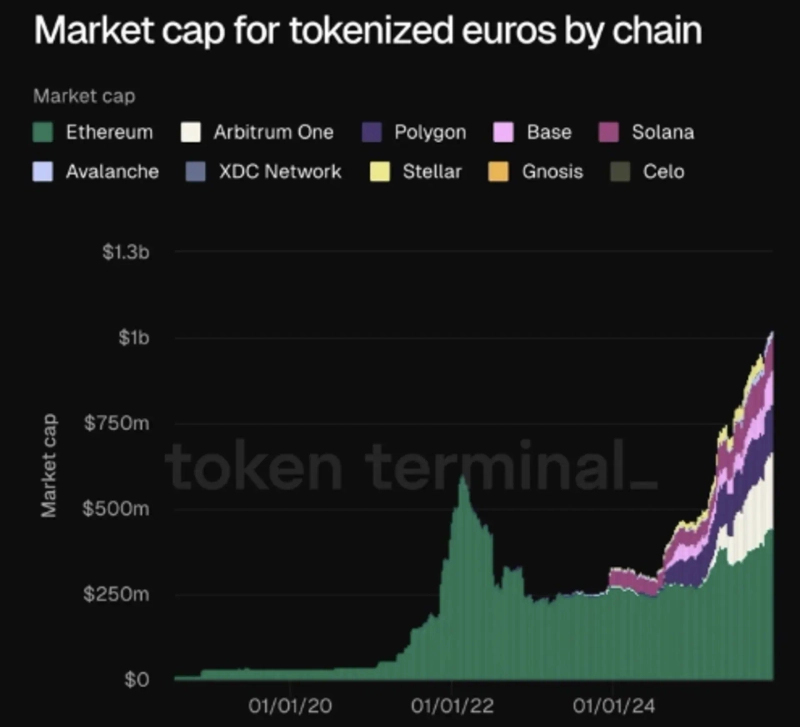 The market capitalization of euro-pegged stablecoins (digital assets whose value is linked to fiat currency) has surpassed $1 billion for the first time.