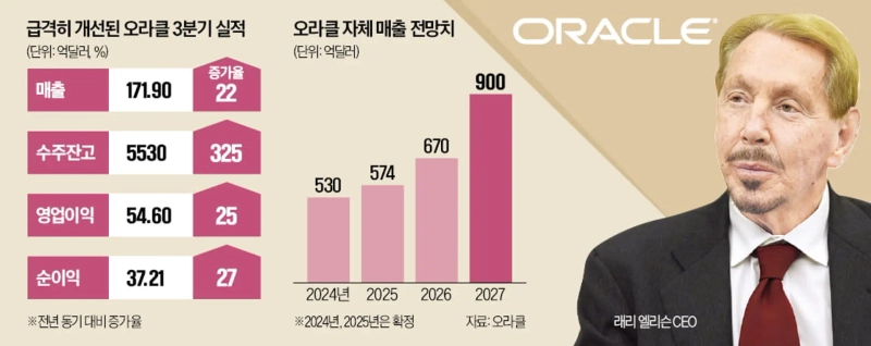 On the 10th (local time), Oracle said revenue for fiscal 2026 third quarter (December 2025–February 2026) rose 22% year on year to $17.19bn (about 25.35 trillion won), beating the market consensus of $16.91bn.