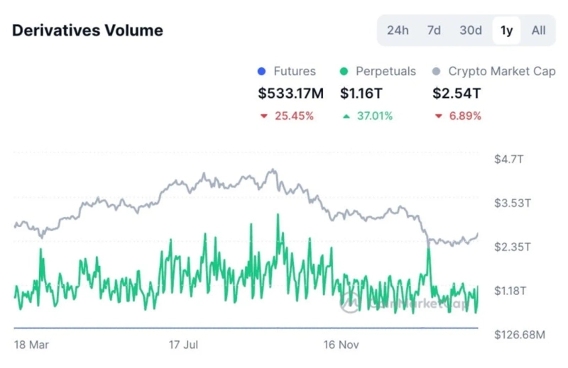 Perpetual futures are a derivatives product that exists only in the crypto market. Unlike traditional finance (TradFi) futures contracts, they remove the maturity structure and, via funding payments, track underlying assets such as bitcoin. In crypto markets, perpetual futures account for more than 70% of total trading volume.