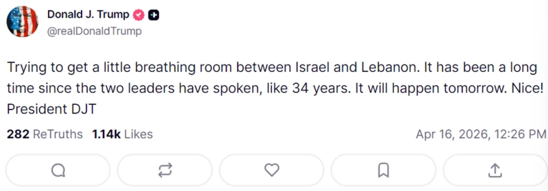 In a Truth Social post on June 15, Trump wrote that Israel and Lebanon are "trying to give each other a little breathing room." He added that the two countries' leaders will speak on June 16 for the first time in 34 years.