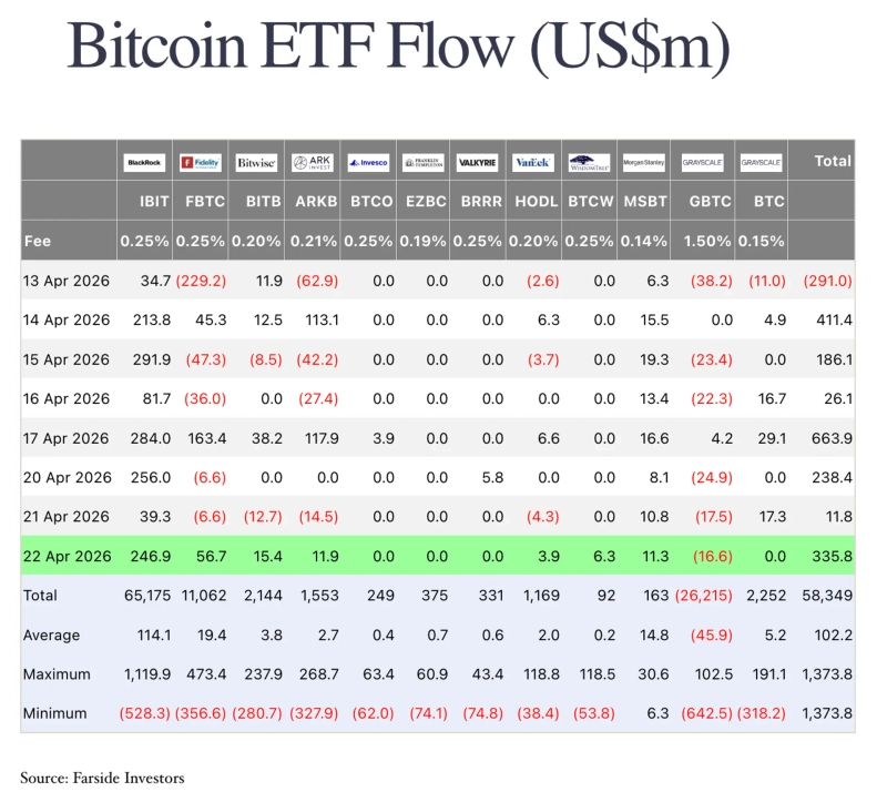 Medium-term positioning remains relatively firm, Bitfinex said in a weekly report published on April 22. Structural demand is still absorbing supply as exchange balances fall and whale investors continue accumulating, the exchange said. ETF flows have also turned net positive for the year, pointing to a gradual recovery in institutional demand. In the short term, however, geopolitical risks and derivatives-market positioning could amplify downside volatility. Over the medium term, accumulation by long-term holders may help support the market’s floor.