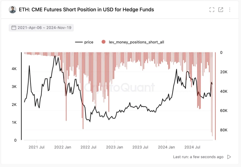 - CME reported that the Hedge Fund's Ethereum Spot Position reached a record high.