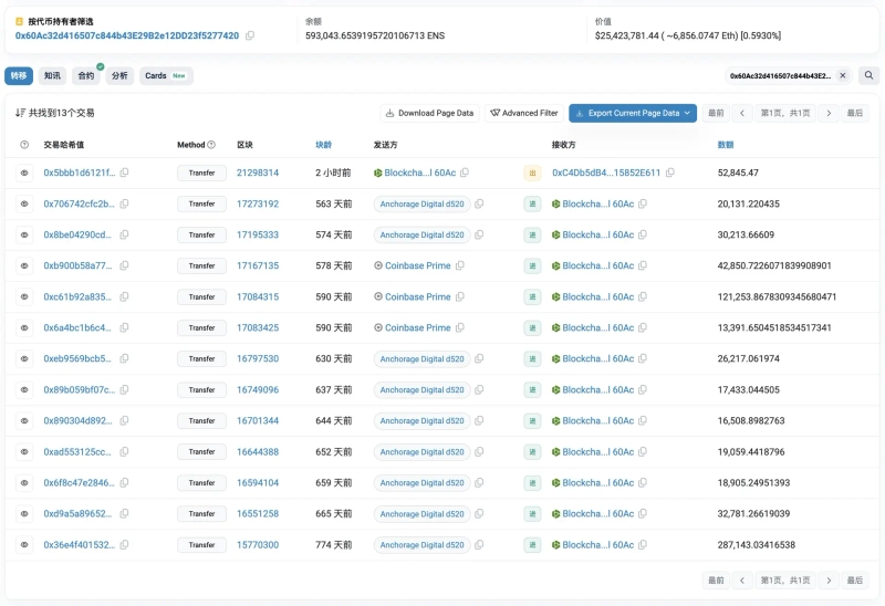 It was reported that some institutional investors have started trading Ethereum Name Service (ENS). On the 29th (local time), a comprehensive analysis indicated that Upbit stated, "ENS has risen by 114% over the past week," and "some institutional investors are beginning to trade." Furthermore, "Two hours ago, Blackchain Capital deposited 52,800 ENS (2.25 million dollars) into Bybit," and "this is the first time the address has traded such a volume." Meanwhile, Blackchain Capital's address has accumulated 645,800 ENS from 2022 to 2023.