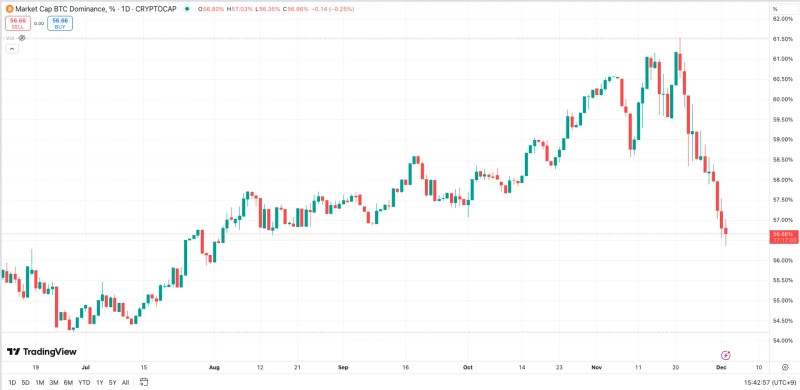 [Analysis] Bitcoin Dominance, New Weekly Low 56.74%... "Altcoin Strengthening"