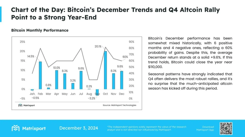 On the 2nd (local time), Metrixport reported that "analyzing Bitcoin charts over the past 10 years shows that it rose 6 times and fell 4 times in December," and "the average return rate is 9.6%." It further predicted that "if such a pattern repeats, Bitcoin will reach 11 million dollars by the year-end."