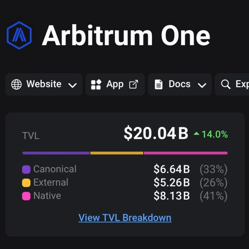 Arbitrum (ARB) has emerged as the first L2 to achieve a TVL (Total Value Locked) of $20 billion. On the 2nd (local time), Arbitrum announced through X that "Arbitrum has achieved the first TVL of $20 billion in L2" and stated that "our expansion potential is limitless."