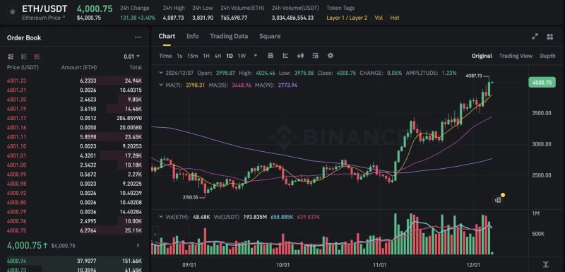 Ethereum (ETH) Surpasses $4000Published 9:48 PM Dec 6, 2024SourceDoohyun Hwang 00Copy linkTelegramXETHDoohyun Hwangcow5361@bloomingbit.ioKEEP CALM AND HODL🍀