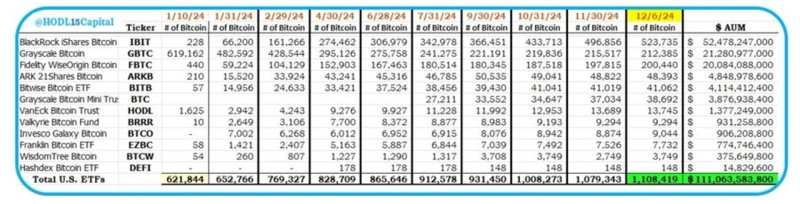 - The US Bitcoin spot ETF's Bitcoin holdings have surpassed 1.1 million.