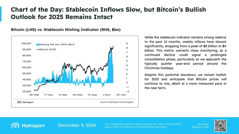 Matrixport added, "Despite the potential slowdown in stablecoin inflows, we expect Bitcoin prices to rise in the long term, next year."