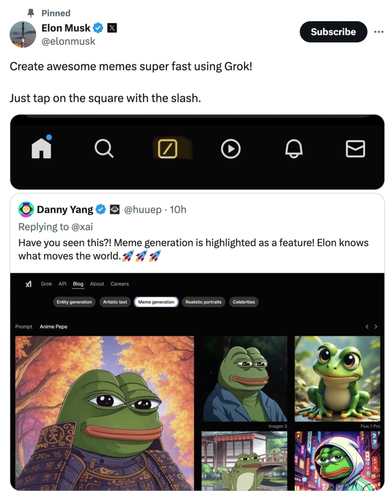 On the 10th, Musk stated on X (formerly Twitter), "You can create great memes very quickly using Groq. Just slash and tap."