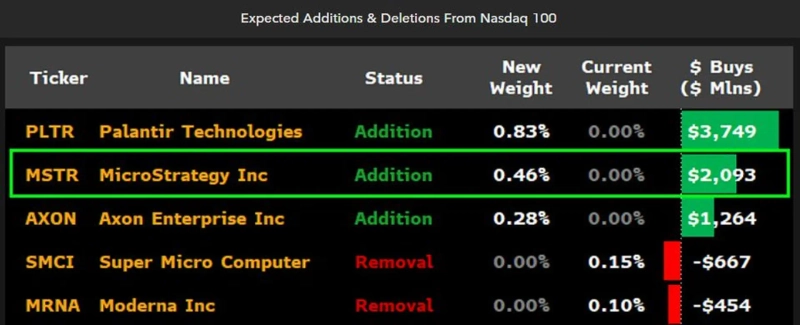 Bloomberg Analyst: "MicroStrategy (MSTR) Expected to Join Nasdaq 100 Index"