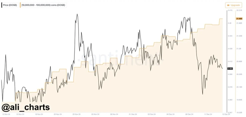 On the 12th (local time), virtual asset analyst Ali Martinez announced on X, "Whales have purchased 160 million Dogecoin in the past 24 hours."