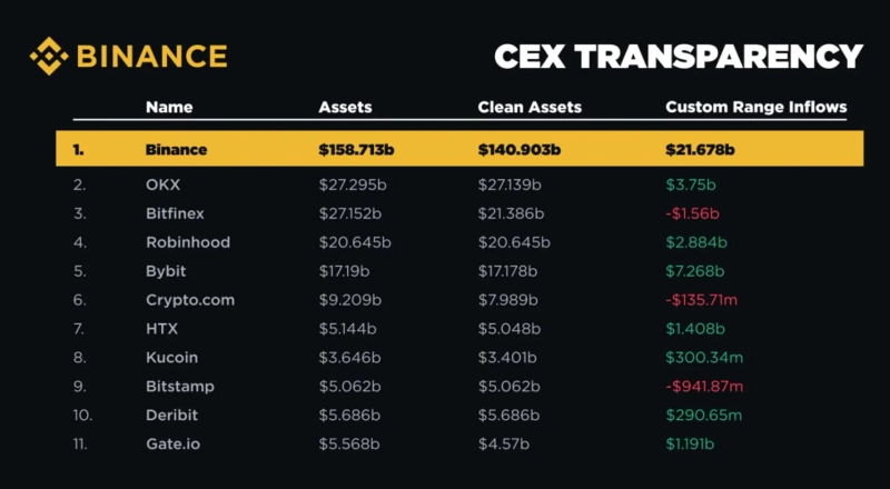 - The deposit amount of Binance surpasses the combined deposits of exchanges ranked 2nd to 11th.