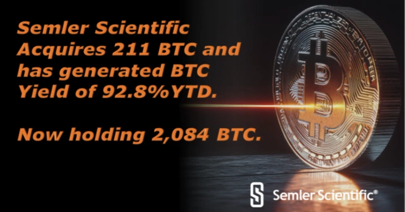 Semler Scientific, a medical technology company that has adopted Bitcoin (BTC) as a strategic asset, has purchased an additional 211 Bitcoins.