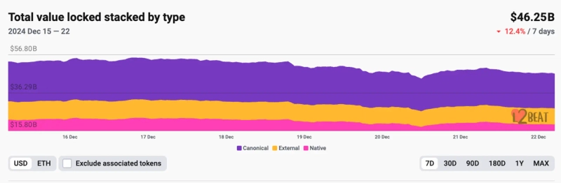 Ethereum Layer 2, Total Deposited Assets $46.2 Billion… Decreased by 12.4% in a Week