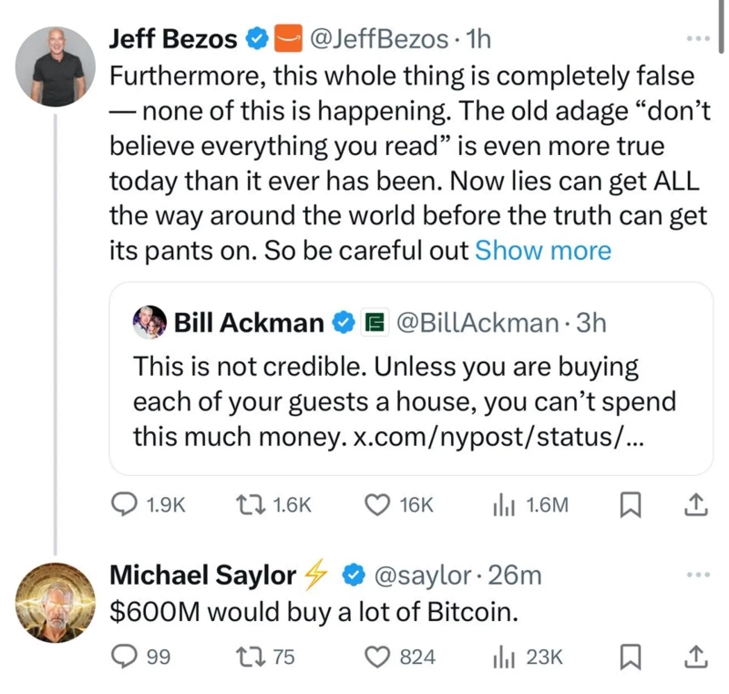 According to Watcher Guru on the 23rd (local time), Saylor proposed to Jeff Bezos, founder of Amazon, via X (formerly Twitter), to buy Bitcoin (BTC).
