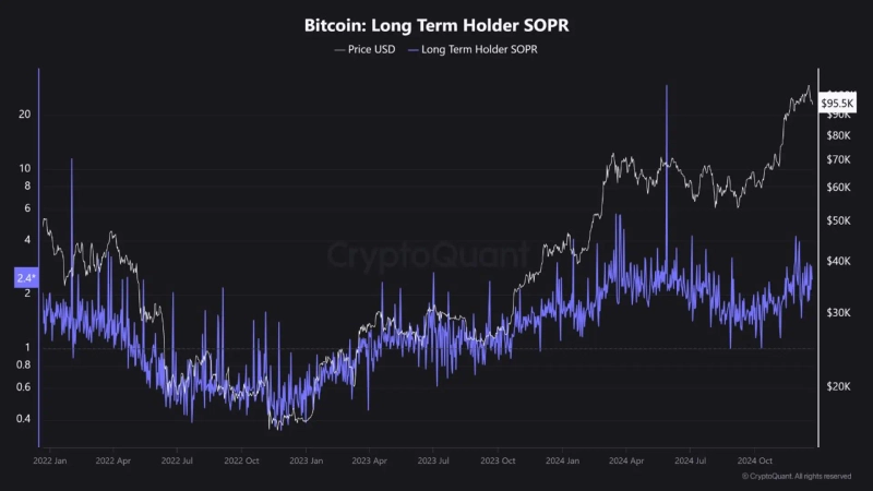 Meanwhile, the Bitcoin long-term holder SOPR is an indicator that shows whether long-term Bitcoin holders (typically holding for more than 155 days) are selling at a profit or loss. Generally, when the SOPR is above 1, it indicates selling at a profit, and when it is below 1, it indicates selling at a loss.