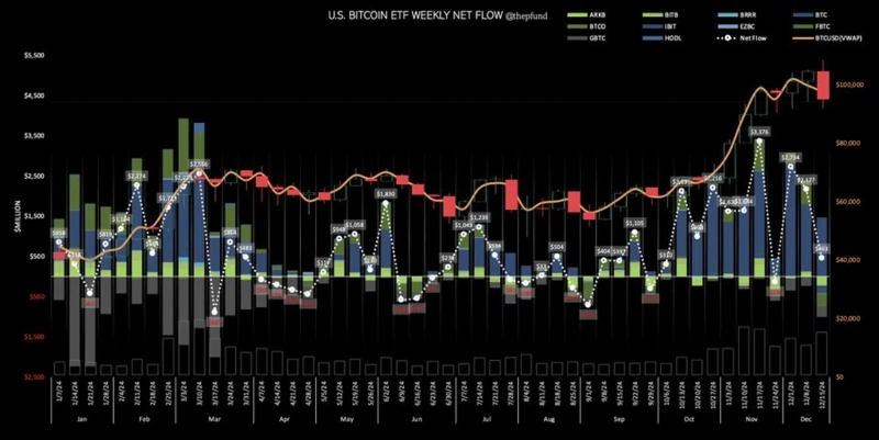 - The Bitcoin Spot ETF has recorded a total net inflow of $17.5 billion in the fourth quarter of this year, marking its best quarter.