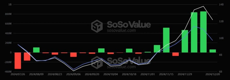 According to SoSoValue data cited by WuBlockchain on the 23rd (local time), the US Ethereum spot ETF recorded a net inflow of $62.73 million (approximately 90.9 billion KRW) last week (December 16th to December 20th). This marks the fourth consecutive week of net inflows.