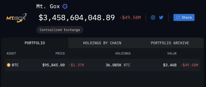 Arkham Intelligence further noted, "Mount Gox currently holds Bitcoin worth approximately $3.45 billion."