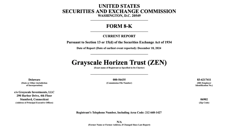 U.S. crypto asset management firm Grayscale has submitted a filing related to Horizen Trust (ZEN) to the U.S. Securities and Exchange Commission (SEC).